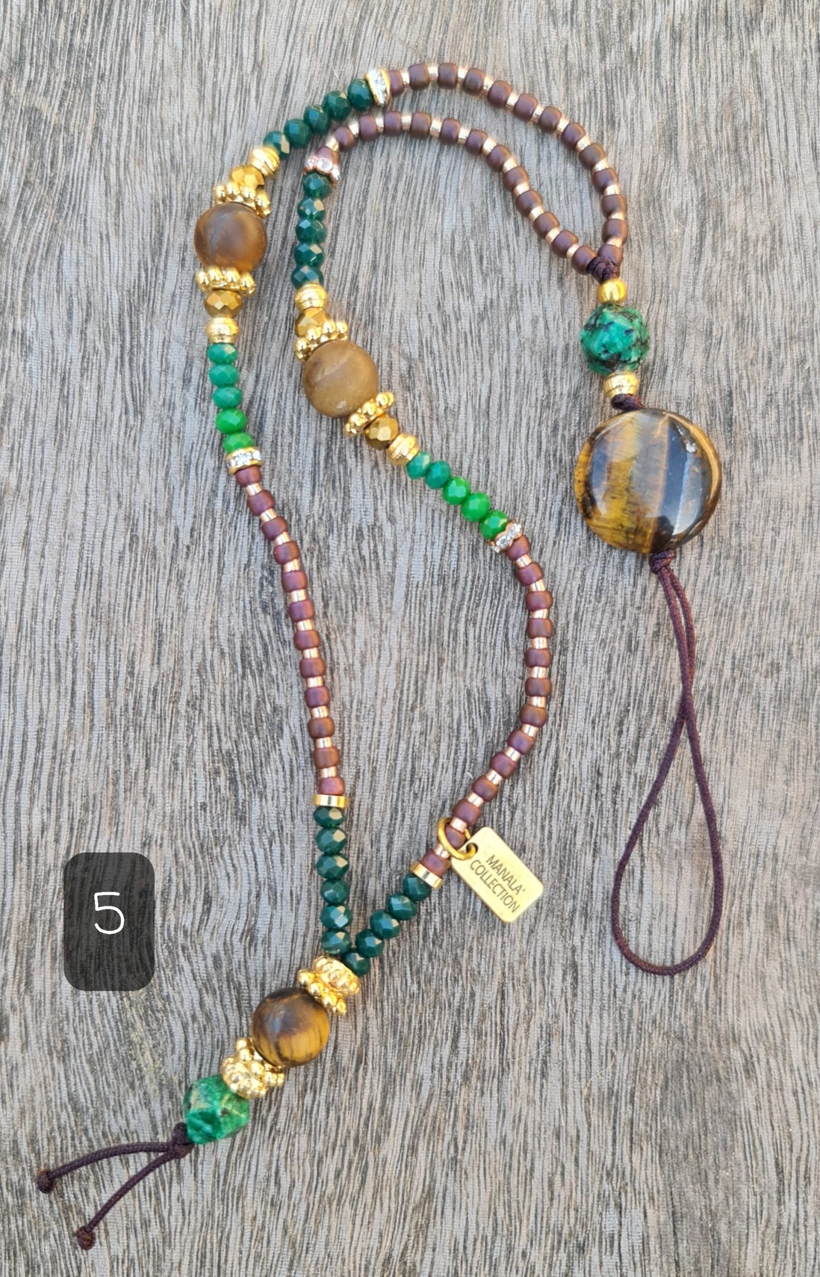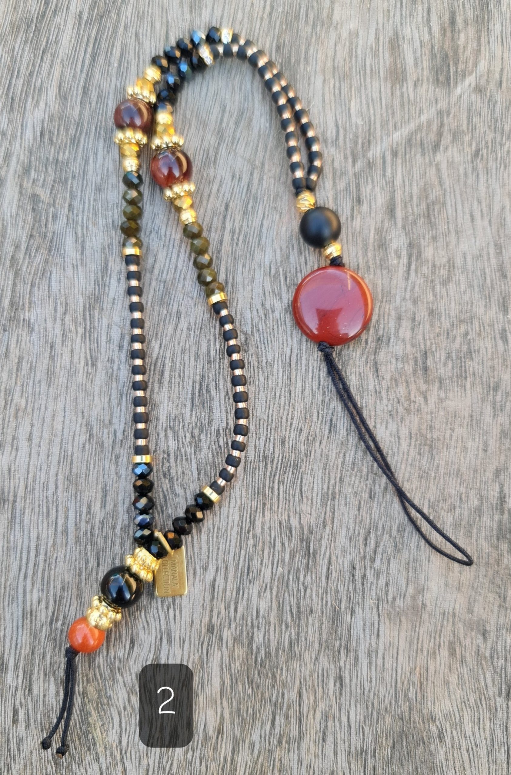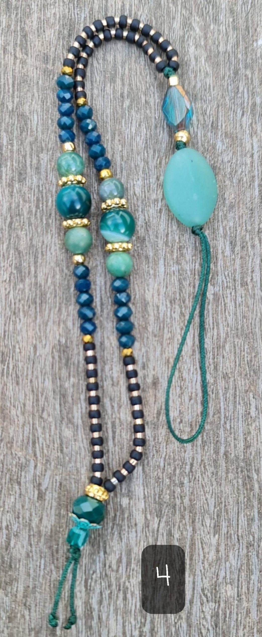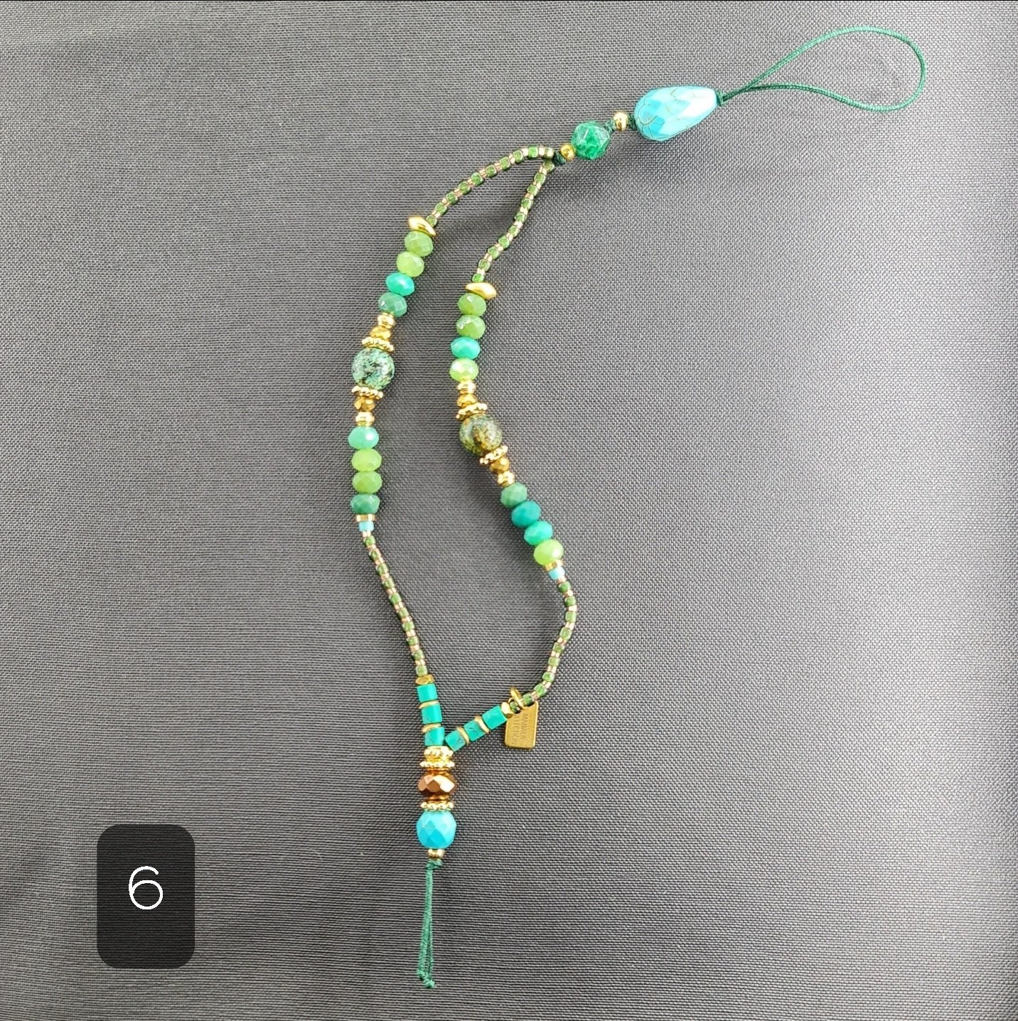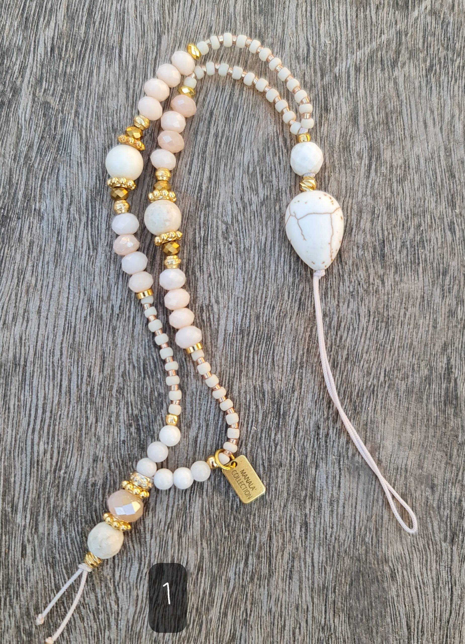 accessoire téléphone longueur 20 cm. Vraies perles semi-précieuses.