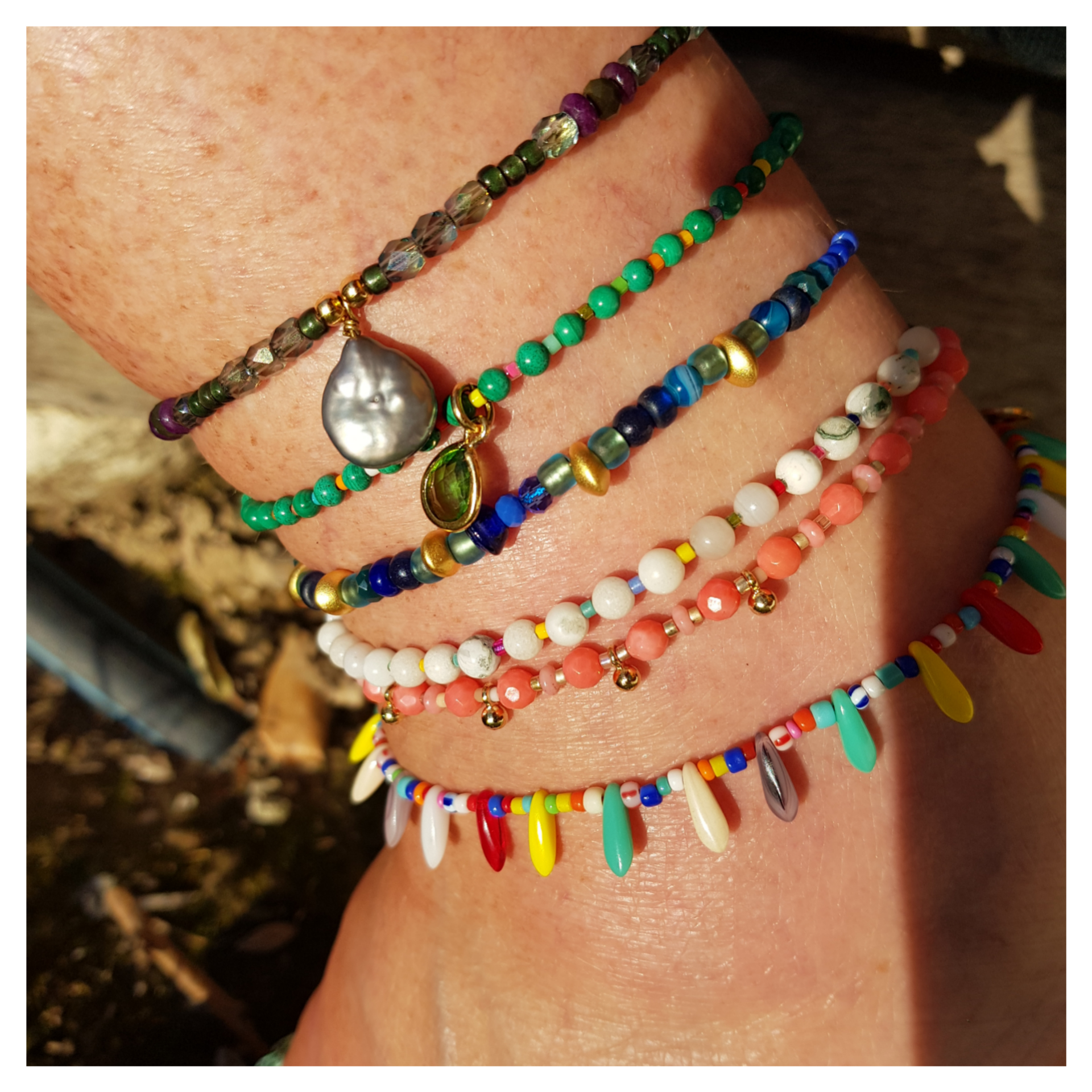 Tour de cheville composé de petites perles facetées de bambou de mer couleur corail et de pampilles en acierinoxydable. longueur 20cm avec rallonge pouvant aller jusqu’à 30 cm. Résistant à l’eau.