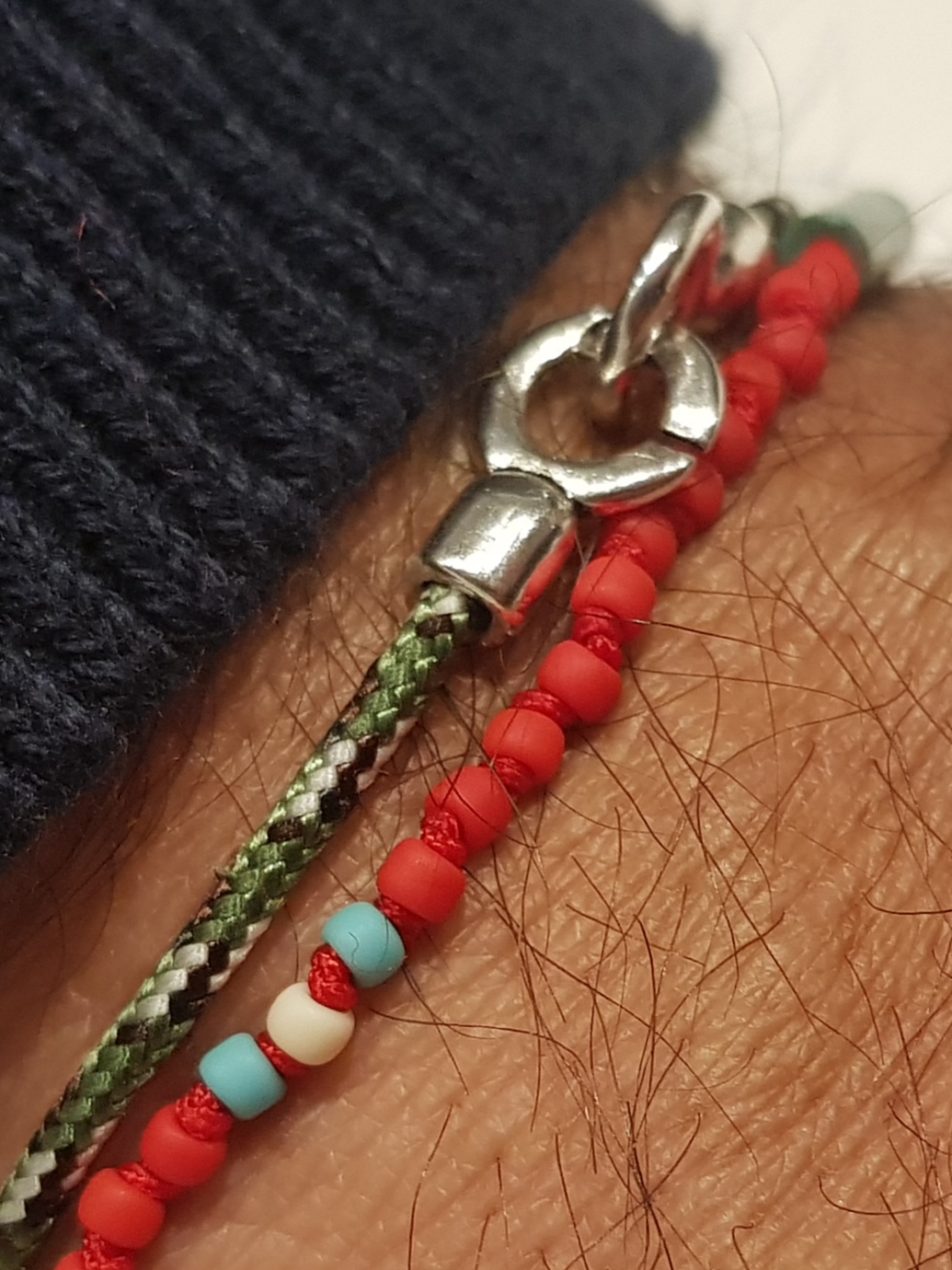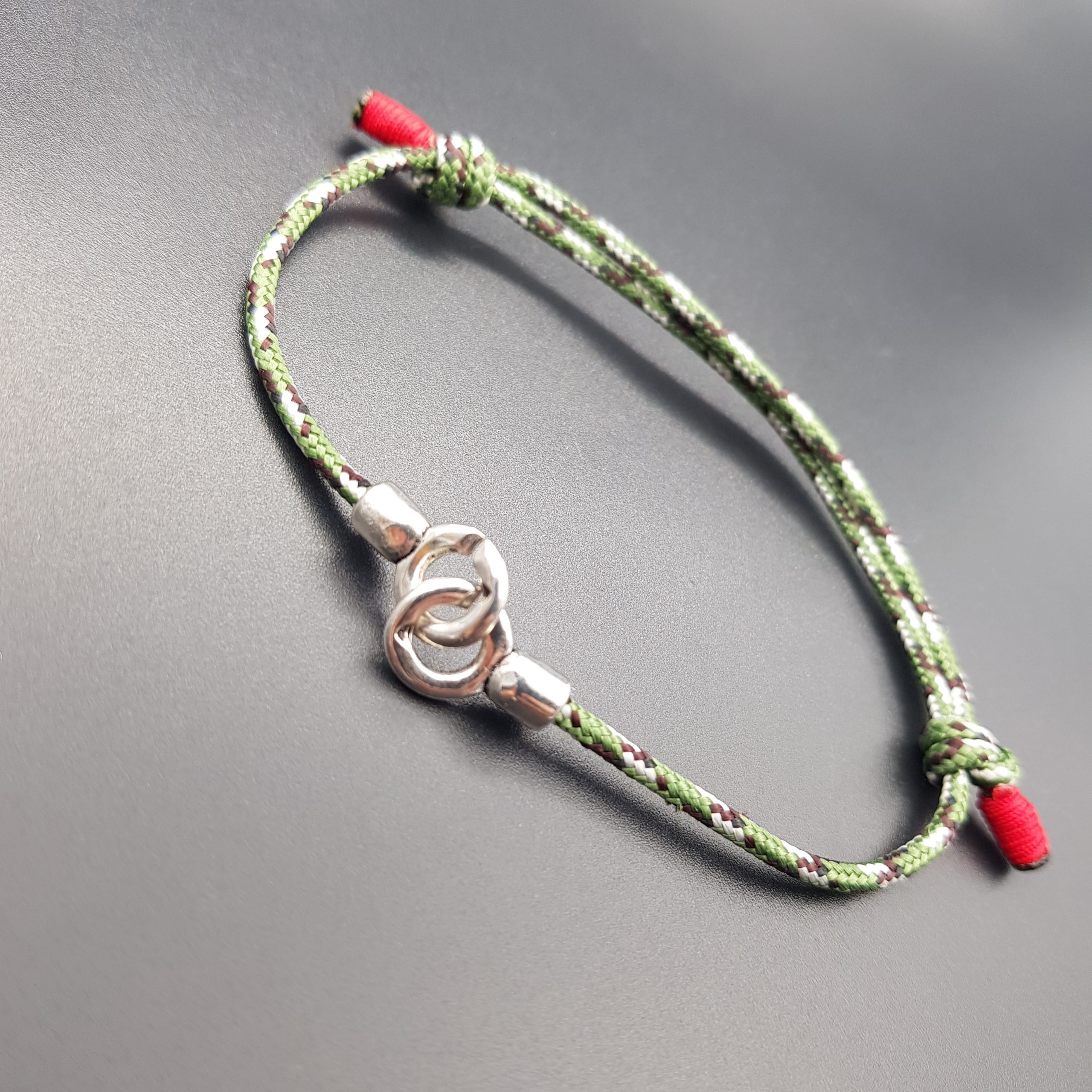 menotte metal argenté bonne qualité et cordon nautique kaki ou noir