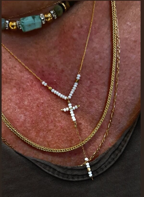 Collier en perles de cristal délicatement monté sur une chaîne en acier inoxydable, il allie élégance et solidité. Sa fermeture réglable permet de l’adapter facilement à toutes les morphologies. Conçu pour résister à l’eau et accompagner la vie de tous les jours, il devient vite un indispensable de ton style.