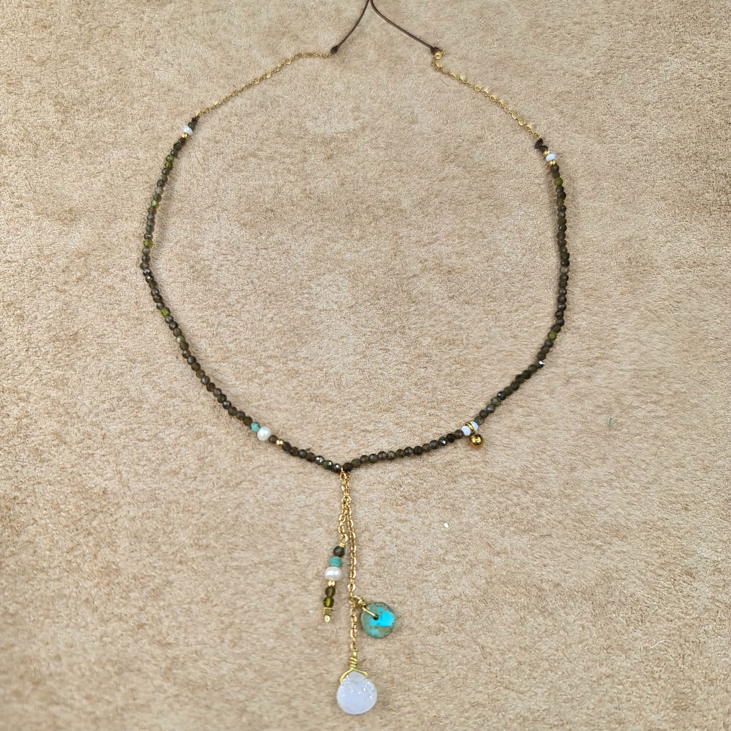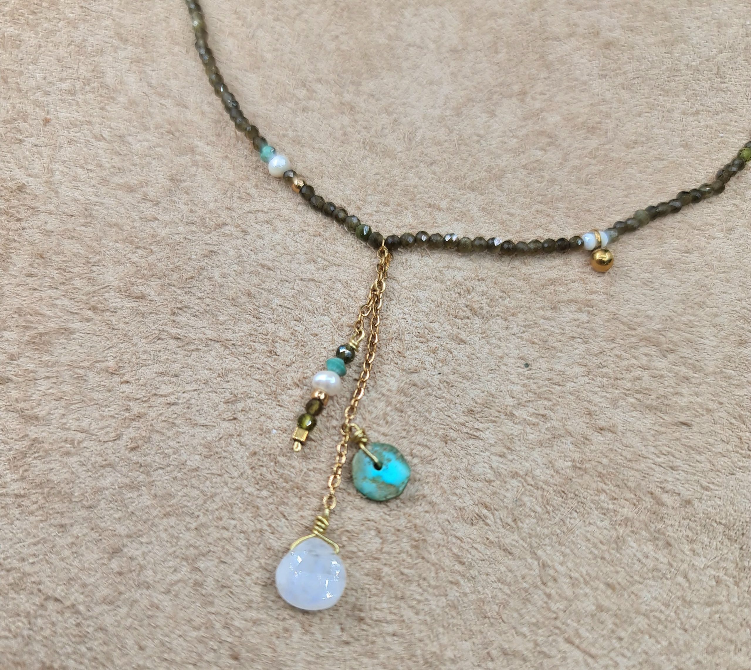 Collier fin et délicat, entièrement réalisé à la main.